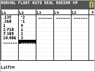 Students determine that the inverse of the exponential function is the natural log function by plotting the inverse of exponential solution points.