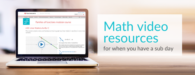 If your students are learning how to graph parent functions, TI’s Families of Functions is the go-to video resource for your substitute teacher. You can simply pick out one or more relevant topics for your students to watch and let the learning begin.