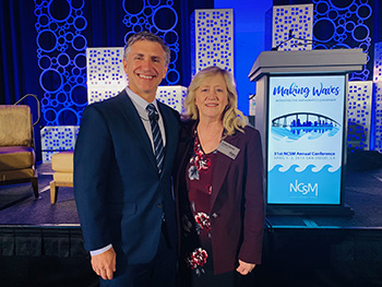 Congratulating Connie Schrock, outgoing president of NCSM, on her bold leadership in math education during the NCSM conference that focused on making waves of positive change for students.